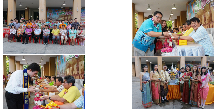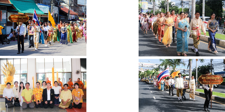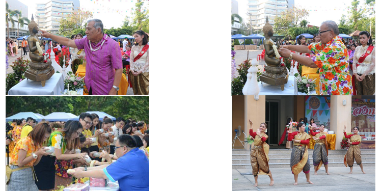Songkarn’s day: April 13th of every year, "Songkran Day" considered as New Year's Day of Thailand. This tradition consists of playing, watering to Buddha statue and graybeard, splashing water in many rural areas including Burapha university. Burapha University organizes Songkran Festival every year, with performances from personnel such as Thai dancing, as well as pouring water over the heads of executives to show their respect. It is also a connection between people in the organization as well. In 2020 there is an epidemic situation of COVID-19, causing the activity impossible to organize.