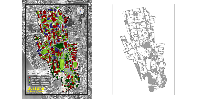 Burapha University has three campuses, which together cover about 1,353.35 acres (5.48 km2) of land: