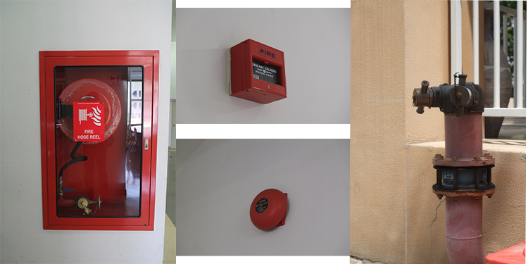 - Fire hydrant equipment was be installed on every floor of each building in Burapha University. In a position that is easy to see and use. There is a push button to alarm when a fire occurs. In additional the trained personnel and security personnel are provided annually in the event of a fire situation.